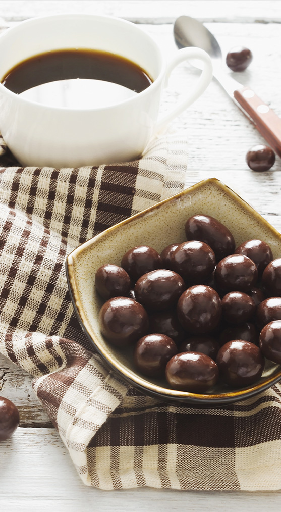 Klasyką pozostają wiśnie w czekoladzie – soczyste, słodkie i aromatyczne, otulone warstwą intensywnej deserowej czekolady. To duet smakowy o zmysłowym i eleganckim charakterze.